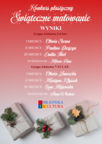Prezentujemy wyniki konkursu plastycznego "Świąteczne malowanie". Wszystkim laureatom serdecznie gratulujemy!