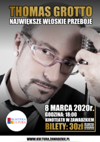8 marca 2020r. o godzinie 18:00 zapraszamy do Kinoteatru na koncert Thomasa Grotto z okazji Dnia Kobiet! W repertuarze największe włoskie przeboje. Bilety w cenie 30zł do nabycia w Kinoteatrze od poniedziałku do piątku w godzinach od 7:00 do 15:00.