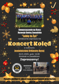 26.01.2020r. o godzinie 16:00 zapraszamy do Kinoteatru na koncert kolęd w wykonaniu Jemielnickiej Orkiestry Dętej. Bezpłatne wejściówki do nabycia u Sołtysa Kielczy (tel: 504 118 022) oraz w Kinoteatrze.