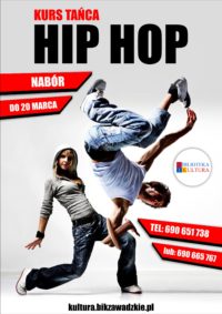 Zapraszamy do zapisów na kurs tańca Hip Hop. Zapisy potrwają do 20 marca. Zajęcia będą się odbywać raz w miesiącu. Terminy zajęć zostaną ustalony po utworzeniu grupy. Szczegóły pod numerami telefonu: 690 651 738 lub 690 665 767.